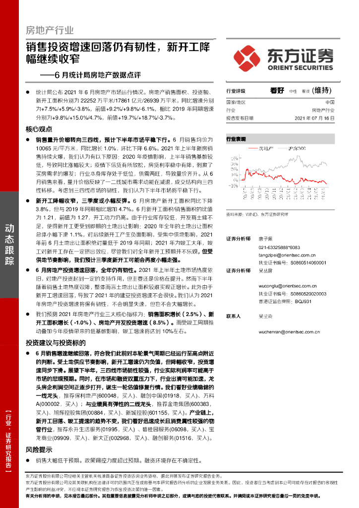 东方证券:房地产行业6月统计局房地产数据点评:销售投资增速回落仍有韧性,新开工降幅继续收窄.pdf