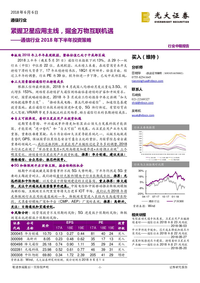 光大证券:通信行业2018年下半年投资策略:紧握卫星应用主线,掘金万物互联机遇.pdf