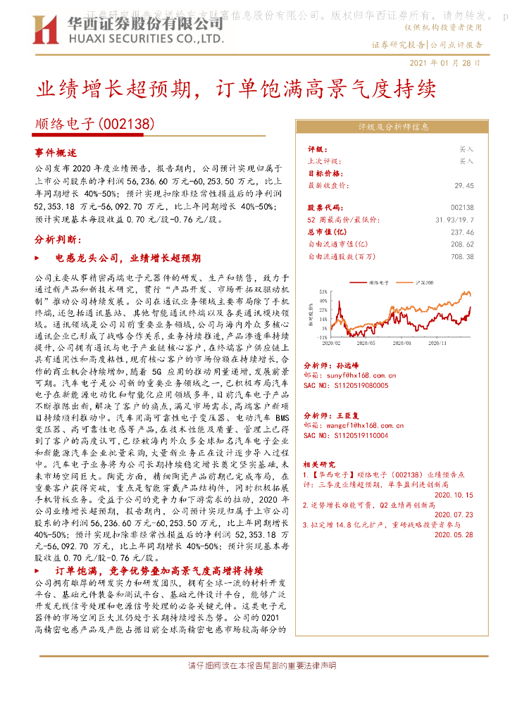 华西证券:顺络电子(002138)-业绩增长超预期,订单饱满高景气度持续.pdf