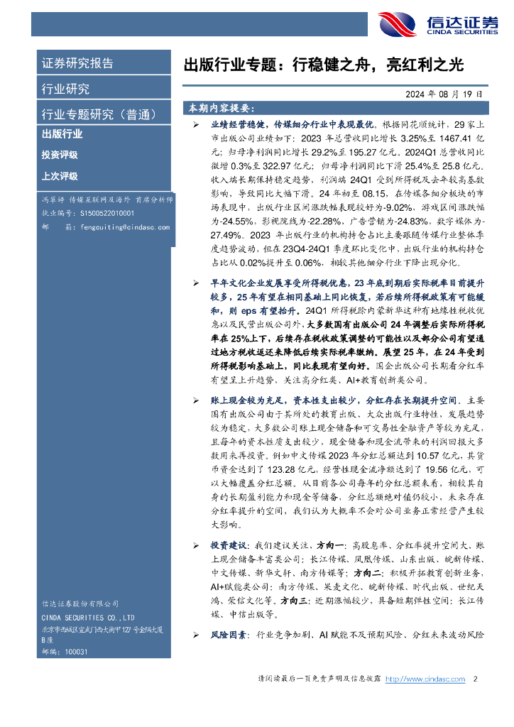 信达证券:出版行业专题报告:行稳健之舟,亮红利之光.pdf