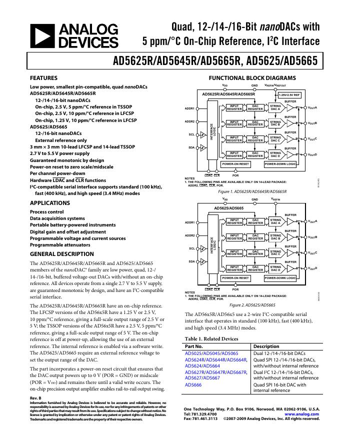 ANALOG DEVICES AD5625R/AD5645R/AD5665R, AD5625/AD5665 数据手册.pdf