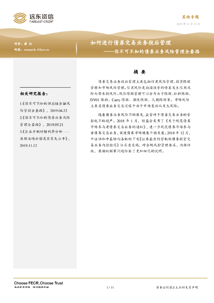 远东资信:如何进行债券交易业务投后管理——你不可不知的债券业务风险管理全套路.pdf