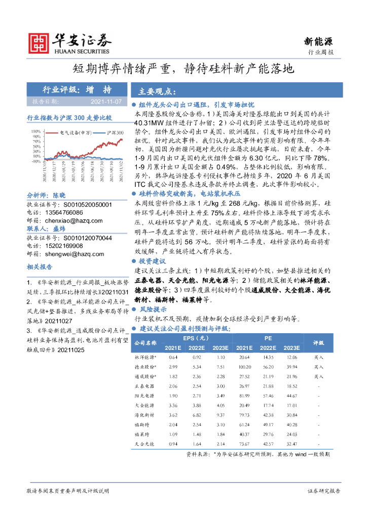 华安证券:新能源行业周报:短期博弈情绪严重,静待硅料新产能落地.pdf