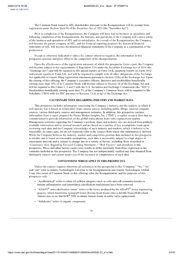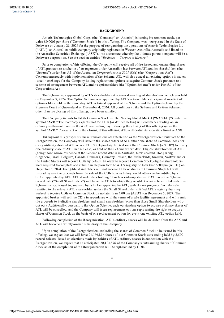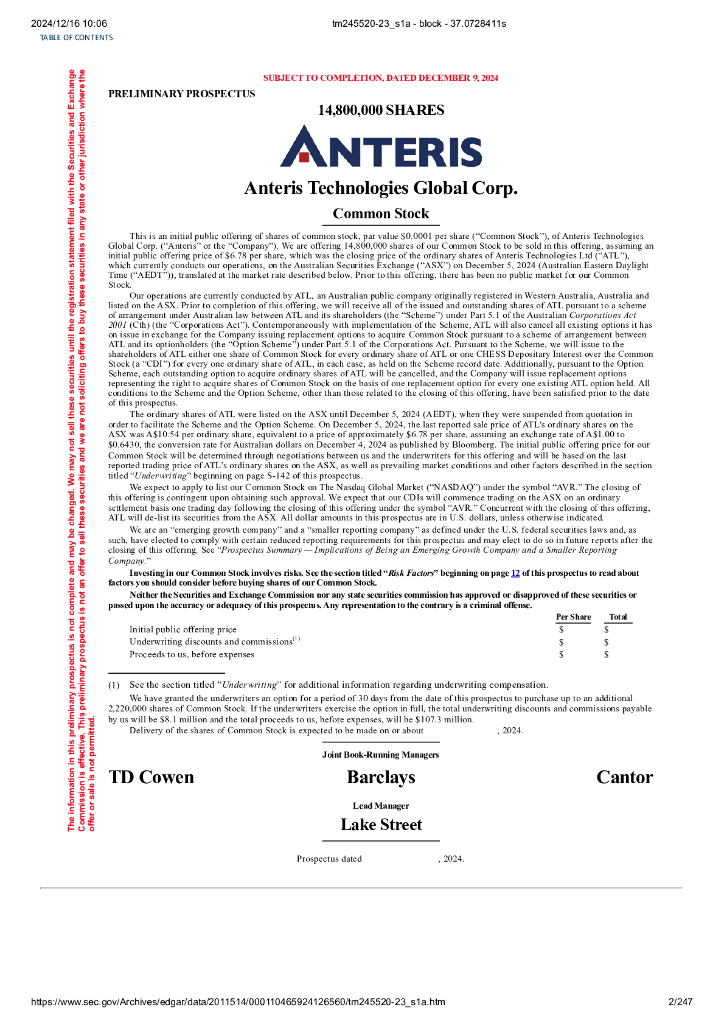 Anteris Technologies Global Corp.美股纳斯达克IPO上市招股说明书.pdf