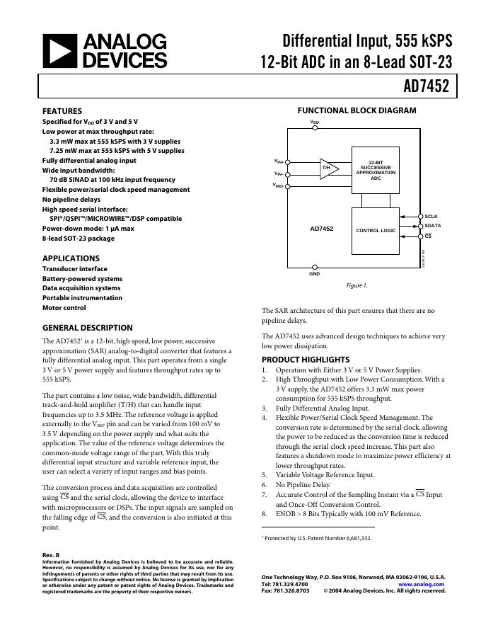 ANALOG DEVICES AD7452 英文产品数据手册 Rev B.pdf