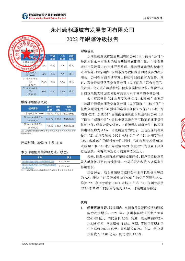 联合资信:永州潇湘源城市发展集团有限公司2022年跟踪评级报告.pdf