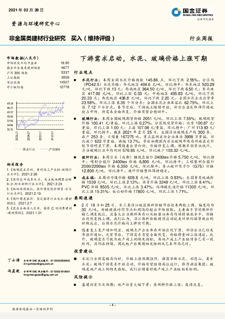 国金证券:非金属类建材行业周报:下游需求启动,水泥、玻璃价格上涨可期.pdf