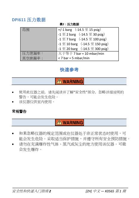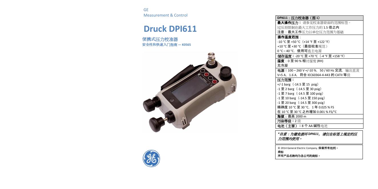 GE Measurement & Control Druck DPI611 便携式压力校准器 安全性和快速入门指南.pdf