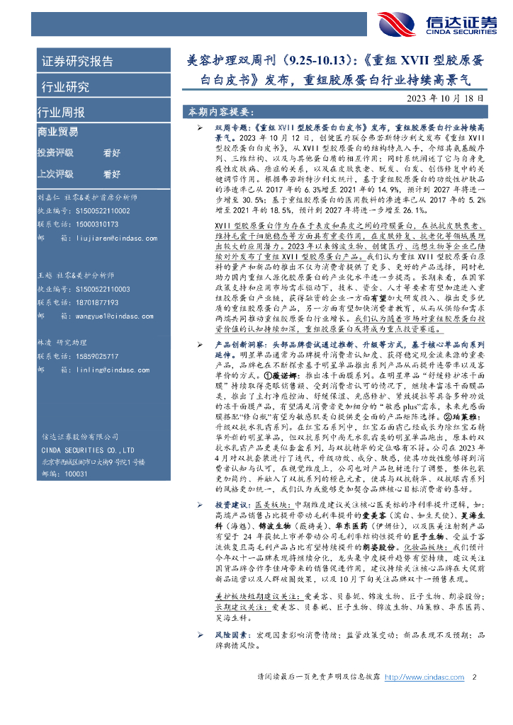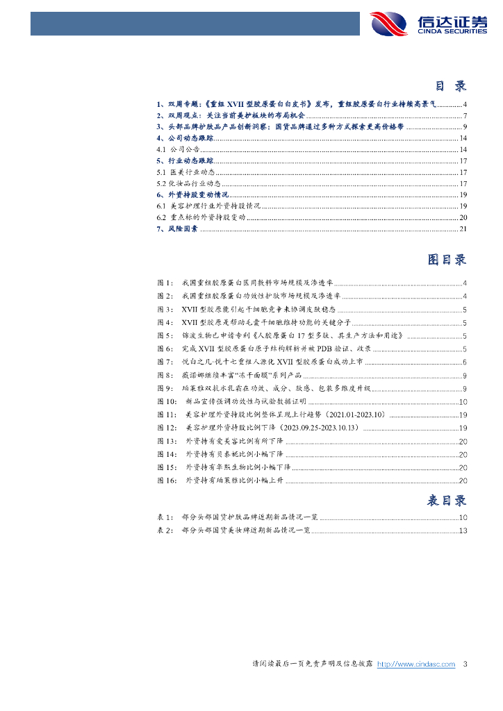 信达证券:美容护理双周刊:《重组XVII型胶原蛋白白皮书》发布,重组胶原蛋白行业持续高景气.pdf