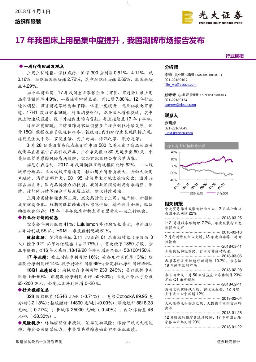 光大证券:纺织和服装行业周报:17年我国床上用品集中度提升,我国潮牌市场报告发布.pdf