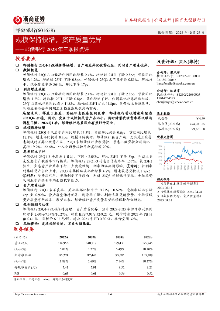 浙商证券:邮储银行(601658)-规模保持快增,资产质量优异.pdf