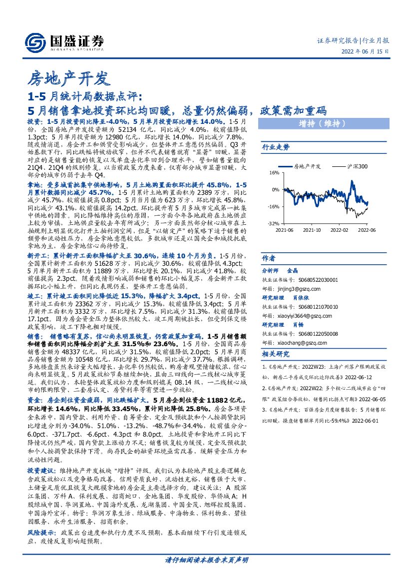 国盛证券:房地产开发1-5月统计局数据点评:5月销售拿地投资环比均回暖,总量仍然偏弱,政策需加重码.pdf