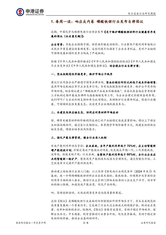 申港证券:电力设备行业研究周报:响应反内卷,磷酸铁锂行业发布自律倡议.pdf