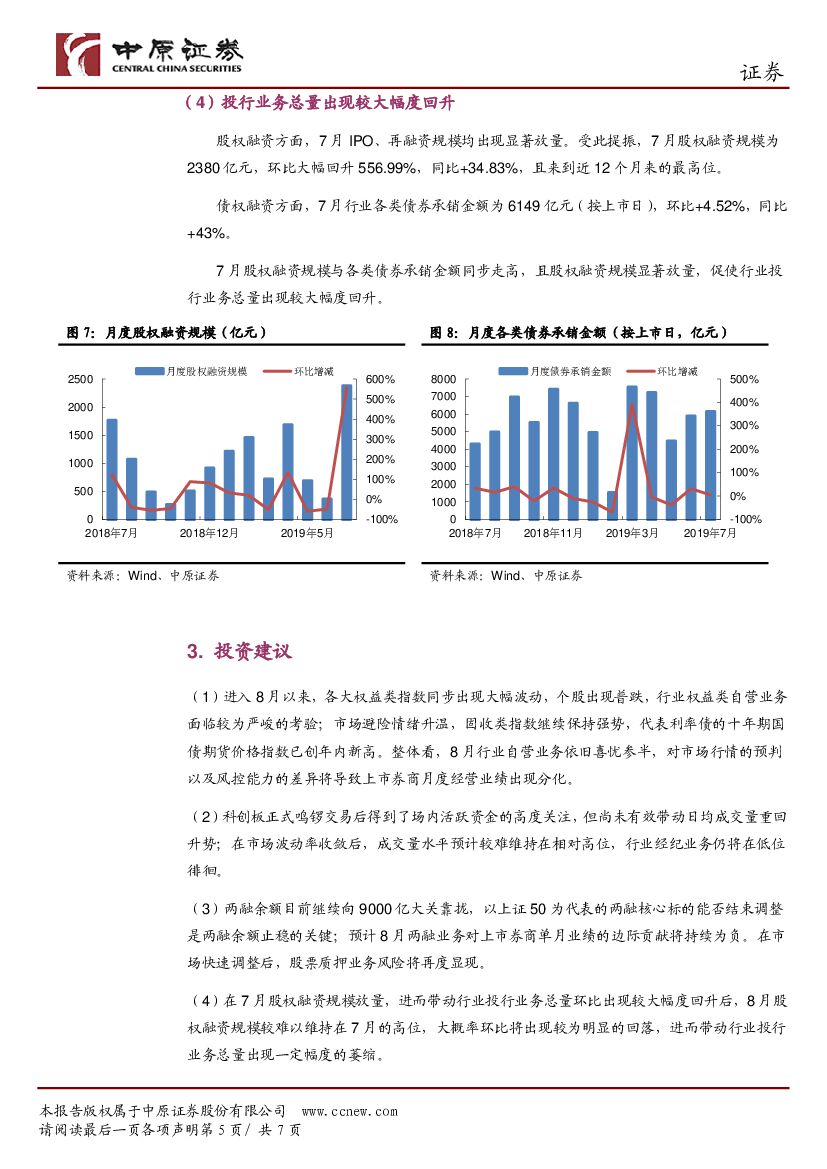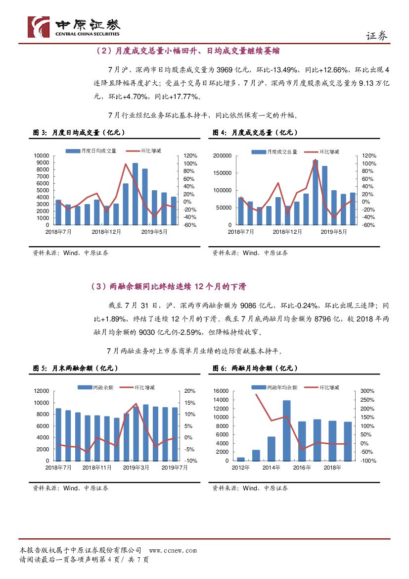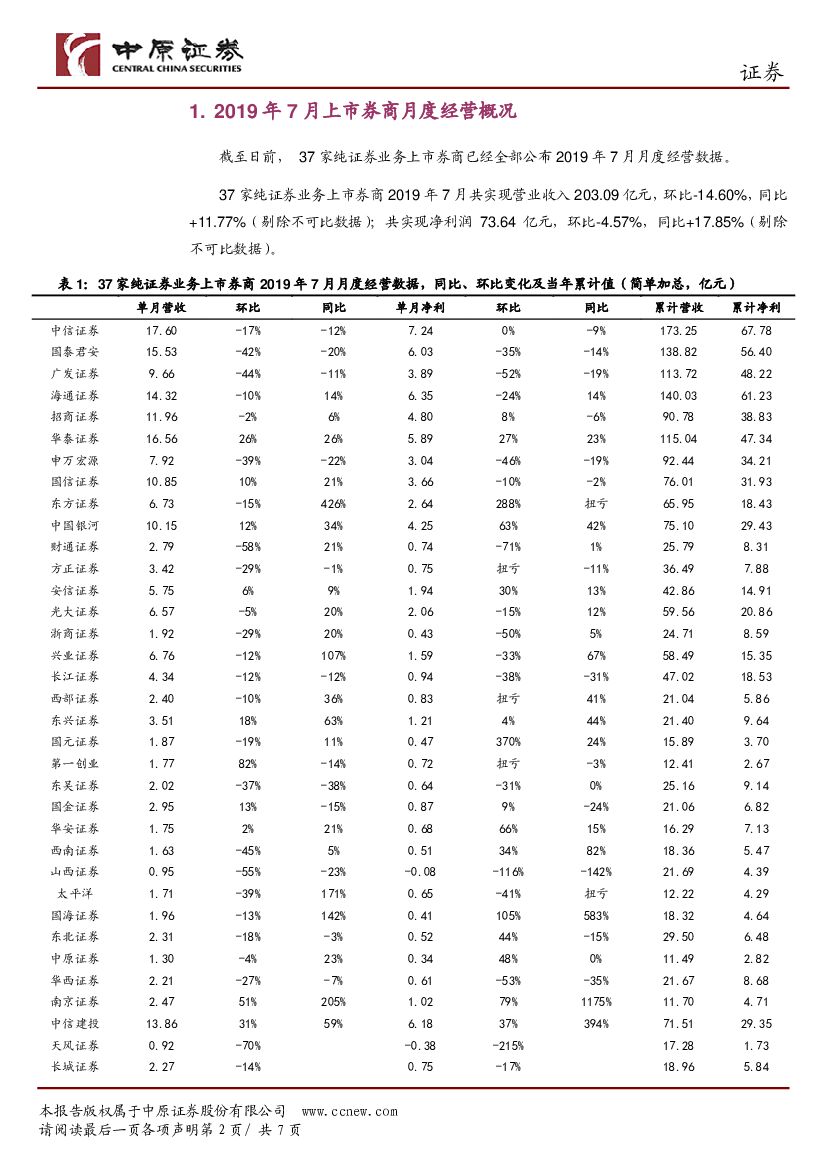 中原证券:上市券商2019年7月月报点评:环比小幅下滑、同比两连升.pdf