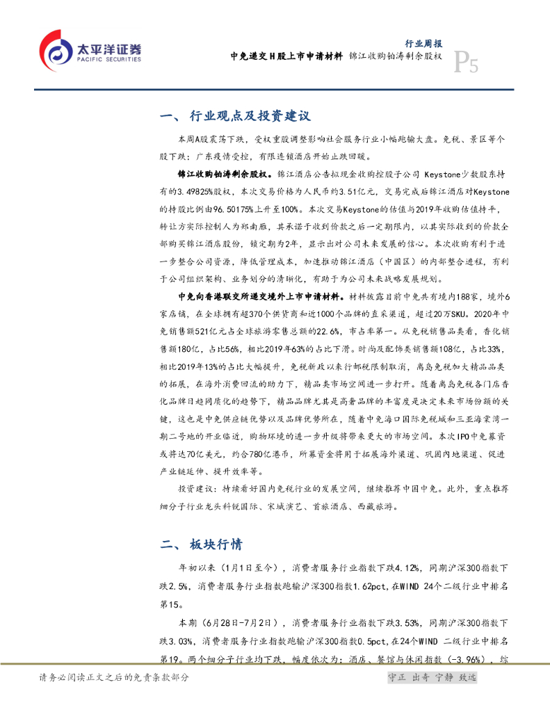 太平洋证券:消费行业周报:中免递交H股上市申请材料 锦江收购铂涛剩余股权.pdf