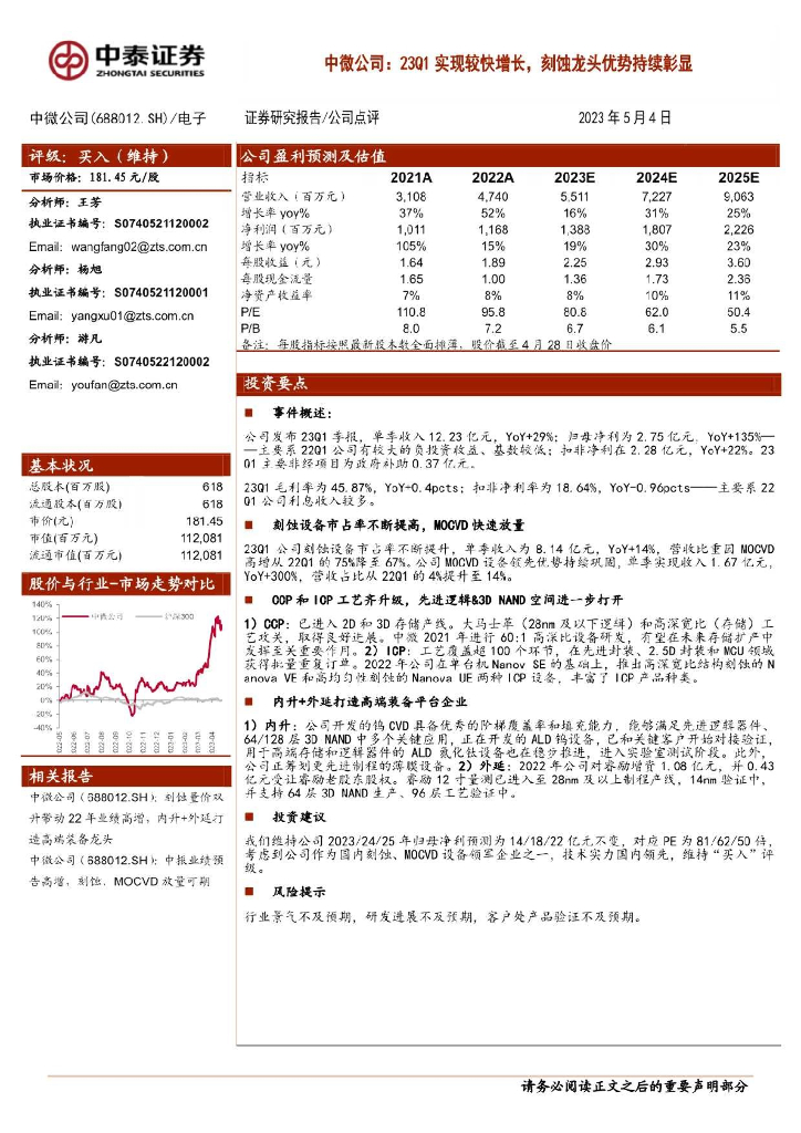 中泰证券:中微公司:23Q1实现较快增长,刻蚀龙头优势持续彰显.pdf