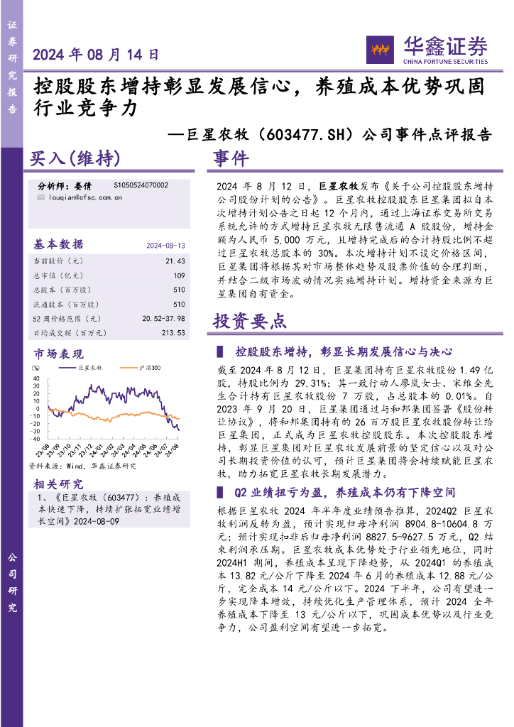 华鑫证券:巨星农牧(603477)-公司事件点评报告:控股股东增持彰显发展信心,养殖成本优势巩固行业竞争力.pdf