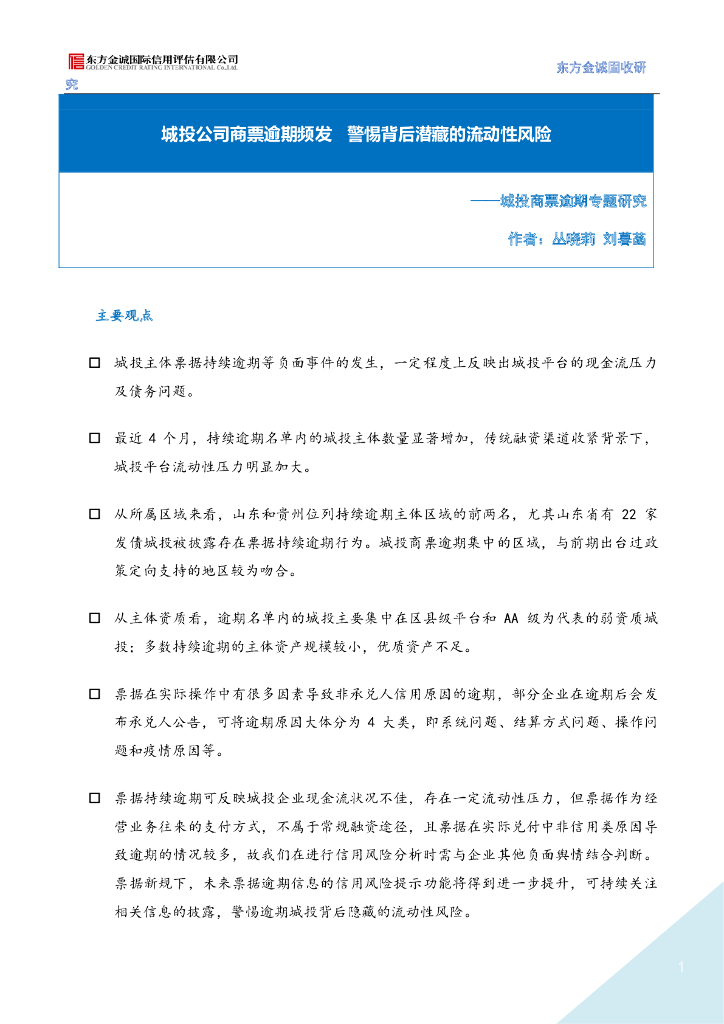 东方金诚:城投公司商票逾期频发 警惕背后潜藏的流动性风险.pdf