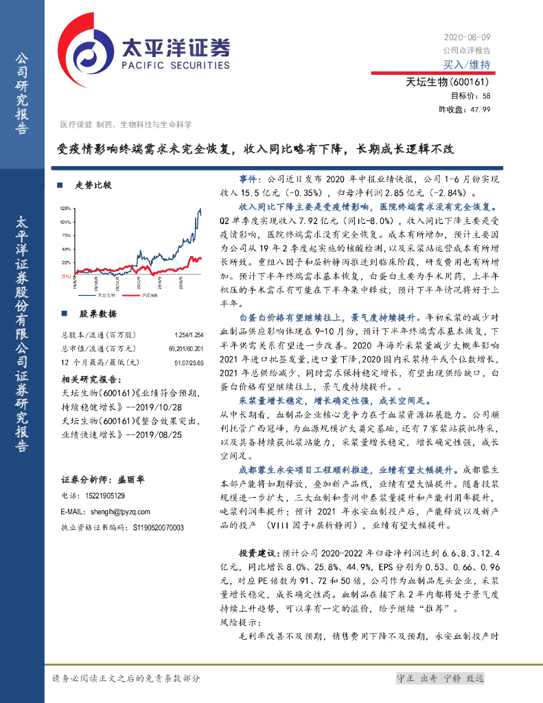 太平洋证券:天坛生物(600161)-受疫情影响终端需求未完全恢复,收入同比略有下降,长期成长逻辑不改.pdf