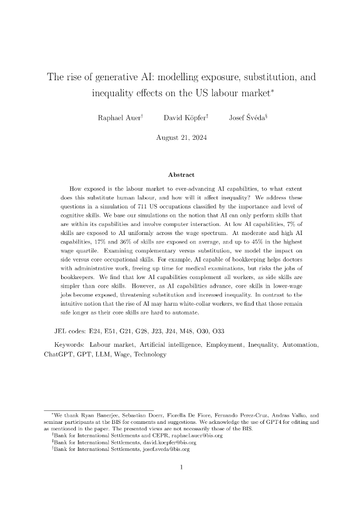 国际清算银行:2024生成式AI的崛起对美国劳动力市场的影响分析报告渗透度替代效应及对不平等状况报告(英文版).pdf