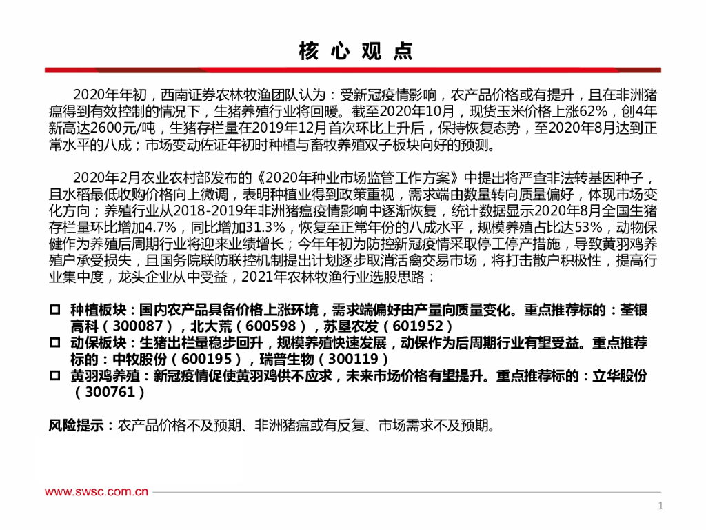 西南证券:农林牧渔行业2021年投资策略:把握种业高景气,拥抱养殖后周期.pdf