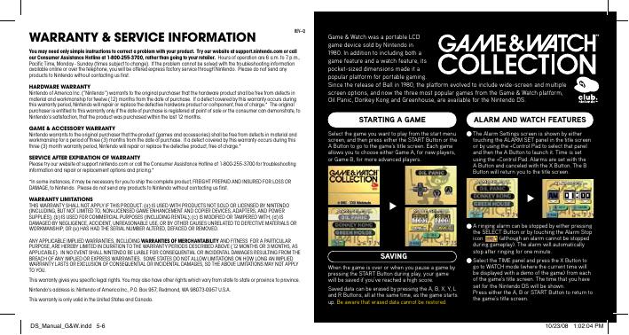 NINTENDO DS GAME&WATCH COLLECTION 使用手册.pdf