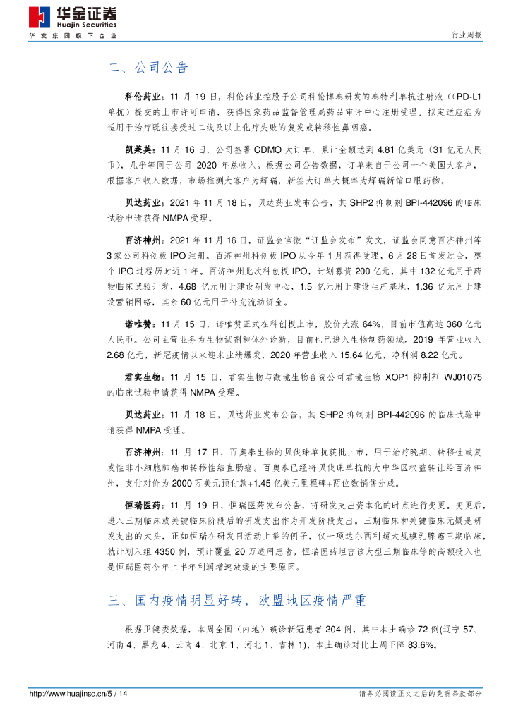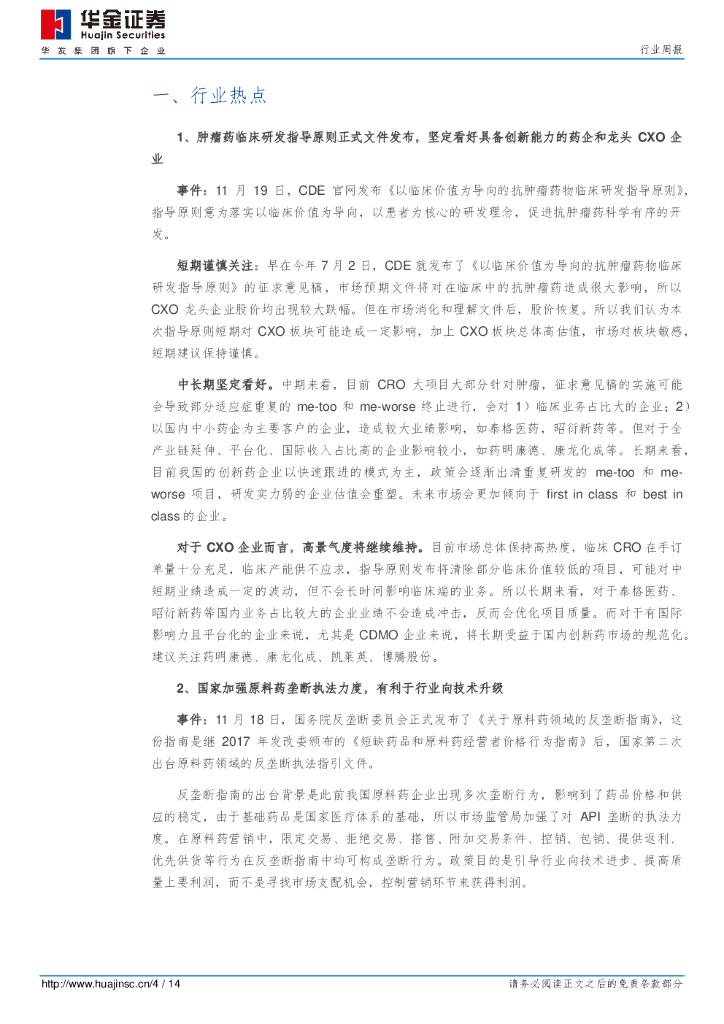 华金证券:医药行业周报:抗肿瘤药临床研发指导原则正式发布,CXO分化,创新上游活跃.pdf