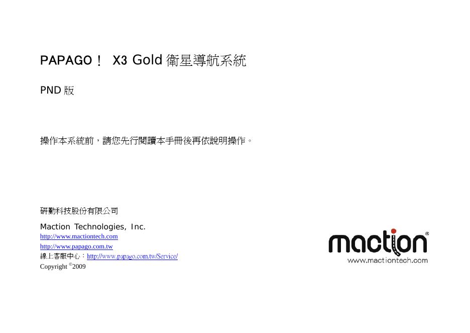 PAPAGO X3 Gold 衛星導航系統 PND 版 使用手册.pdf