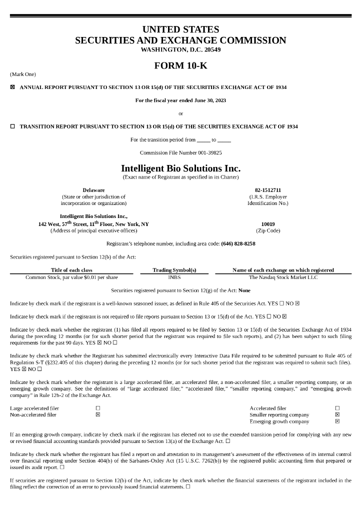 Intelligent Bio Solutions Inc.(INBS)2023财年年度报告(英文版).pdf