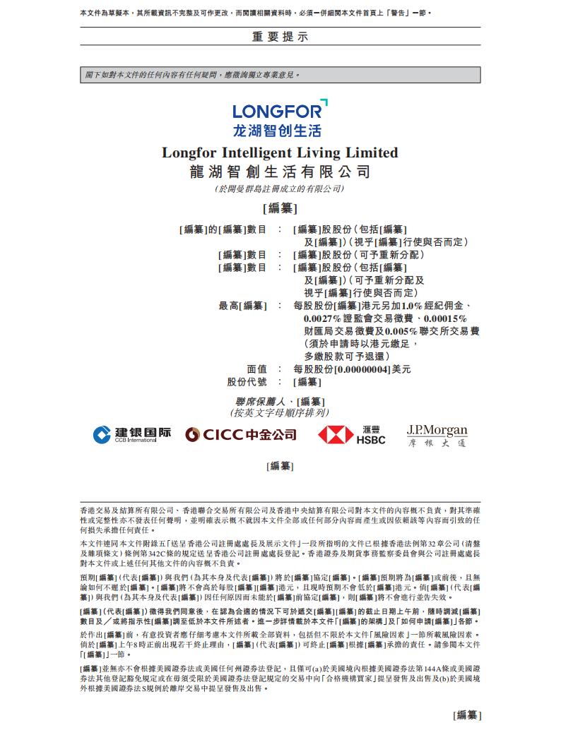 龙湖智创生活港交所IPO招股说明书:在管面积约2.5亿平方米.pdf