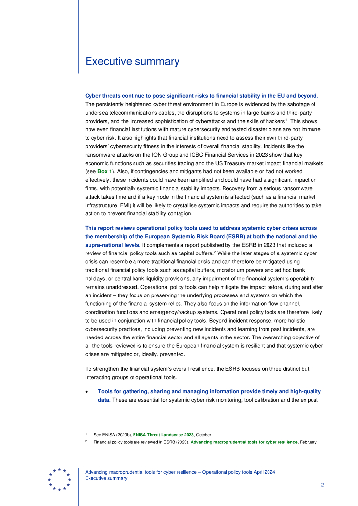 ESRB欧洲系统风险委员会:2024改进增强网络复原力的宏观审慎工具-务政策工具2024年4月对国家和泛欧框架的审查报告(英文版).pdf