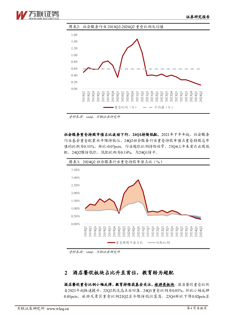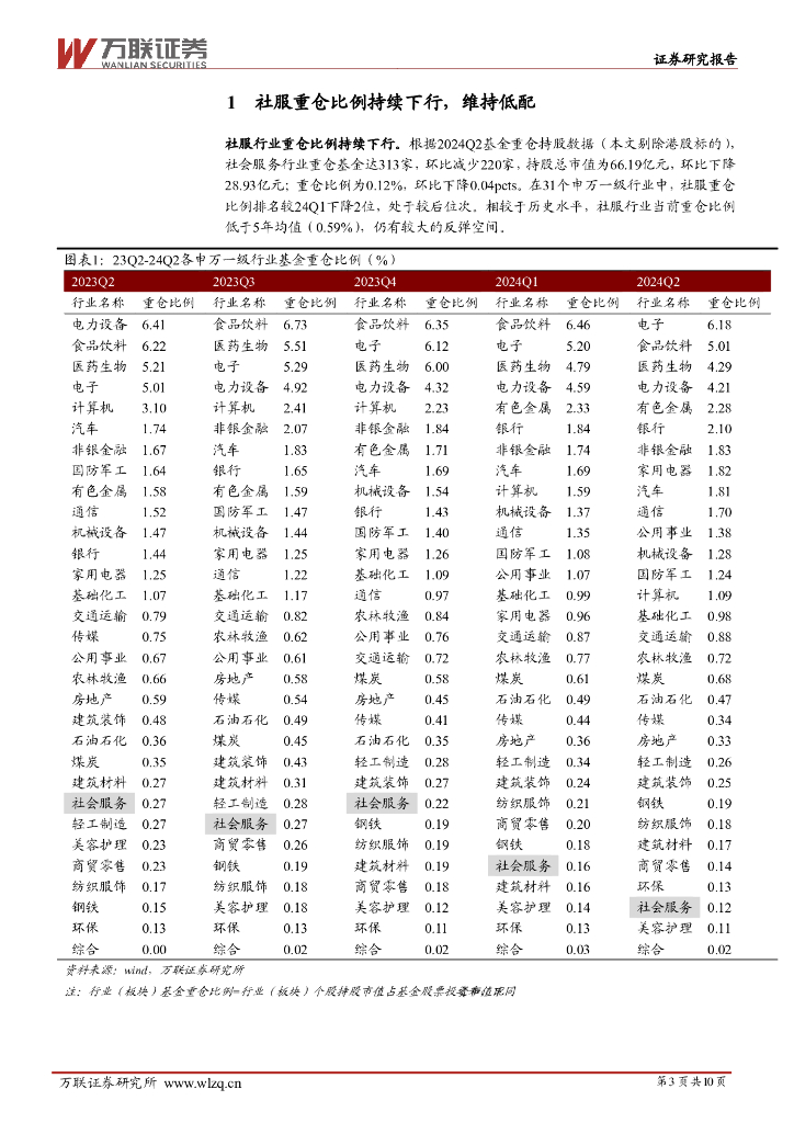 万联证券:社会服务行业2024Q2基金持仓分析:社服Q2普遍遭遇减仓,教育板块转为超配.pdf