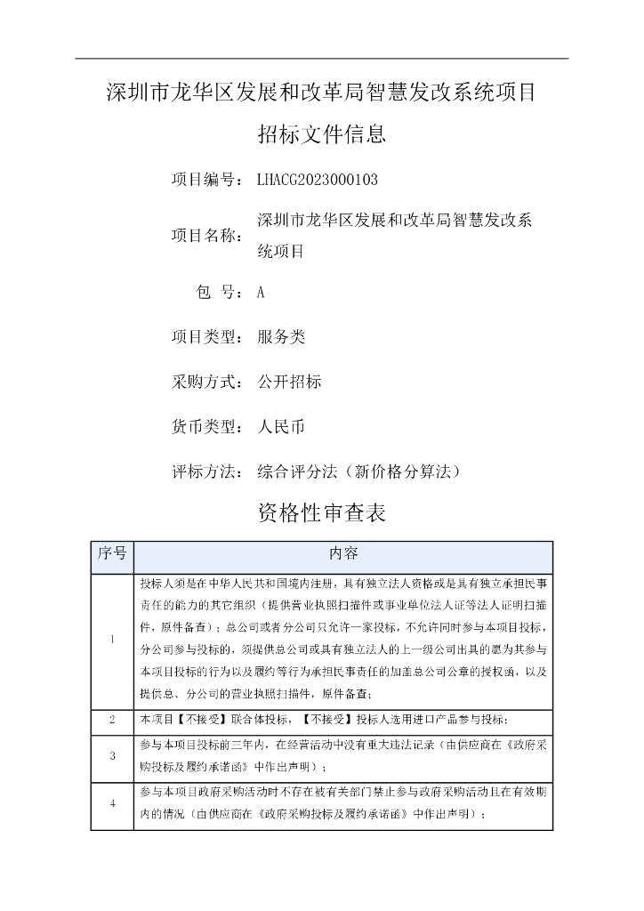 深圳市龙华区发展和改革局智慧发改系统项目招标文件.pdf