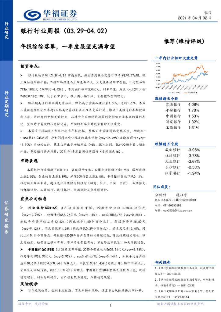 华福证券:银行行业周报:年报徐徐落幕,一季度展望充满希望.pdf