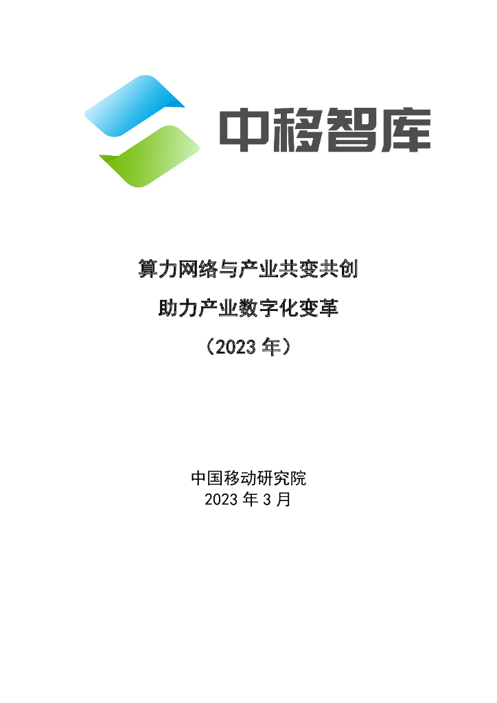 中国移动研究院:算力网络与产业共变共创助力产业数字化变革报告(2023).pdf
