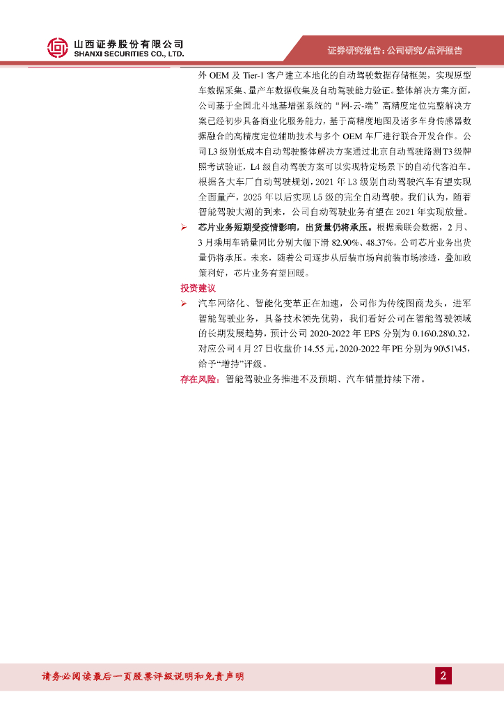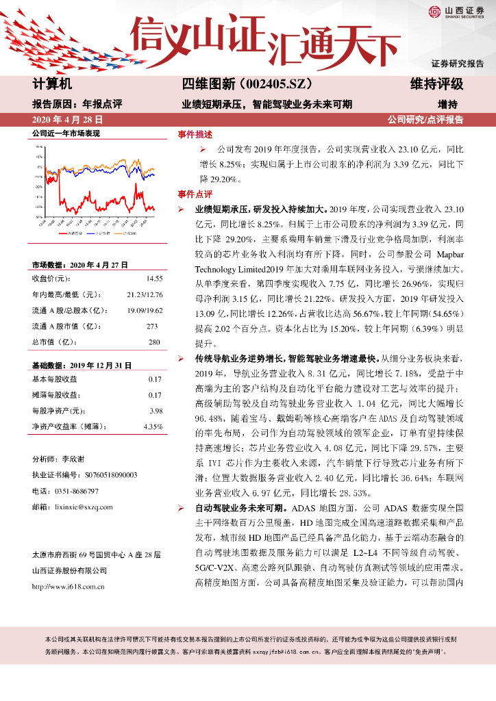 山西证券:四维图新(002405)-业绩短期承压,智能驾驶业务未来可期.pdf