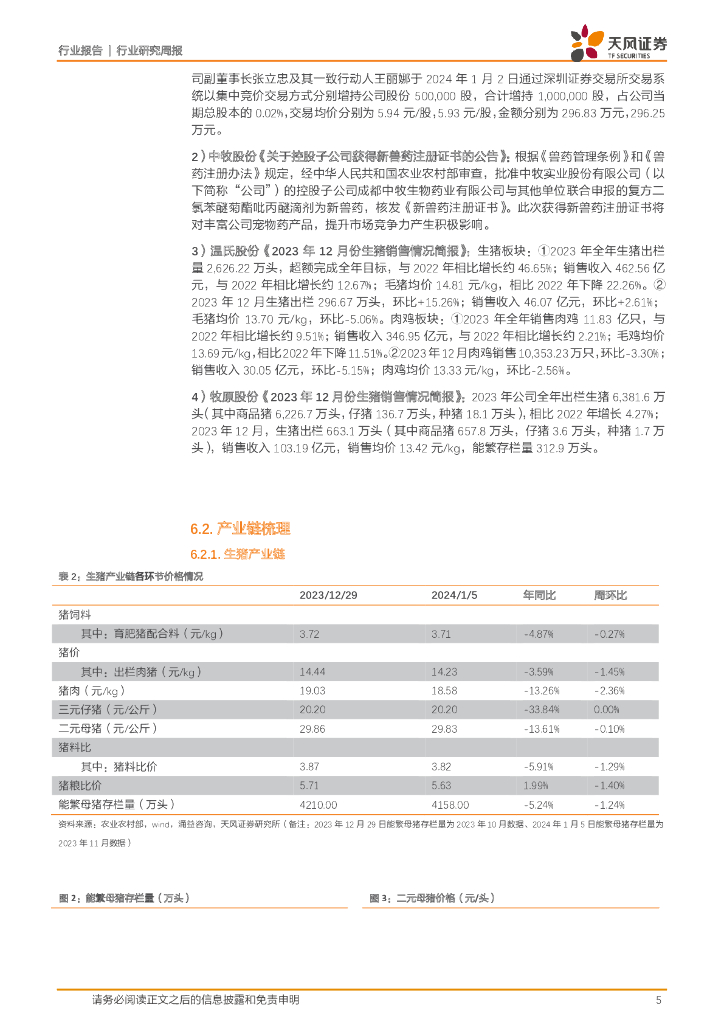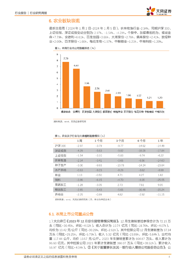 天风证券:农林牧渔2024年第1周周报:第三方数据显示能繁持续去化!重视生猪“前瞻性”机会!.pdf