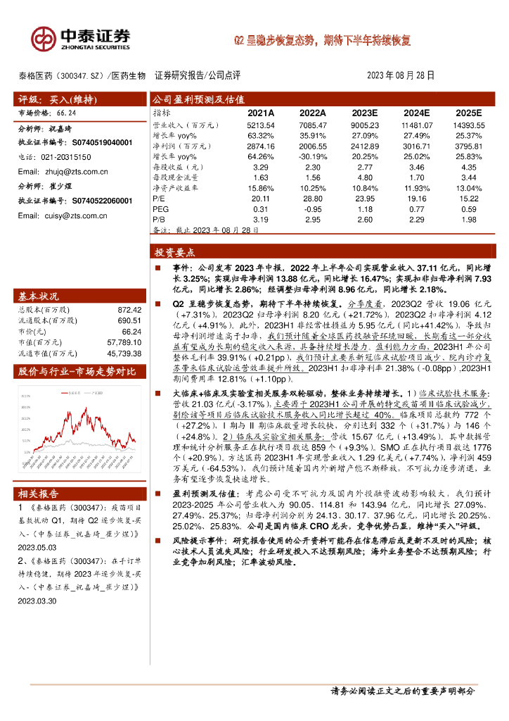 中泰证券:泰格医药(300347)-Q2呈稳步恢复态势,期待下半年持续恢复.pdf