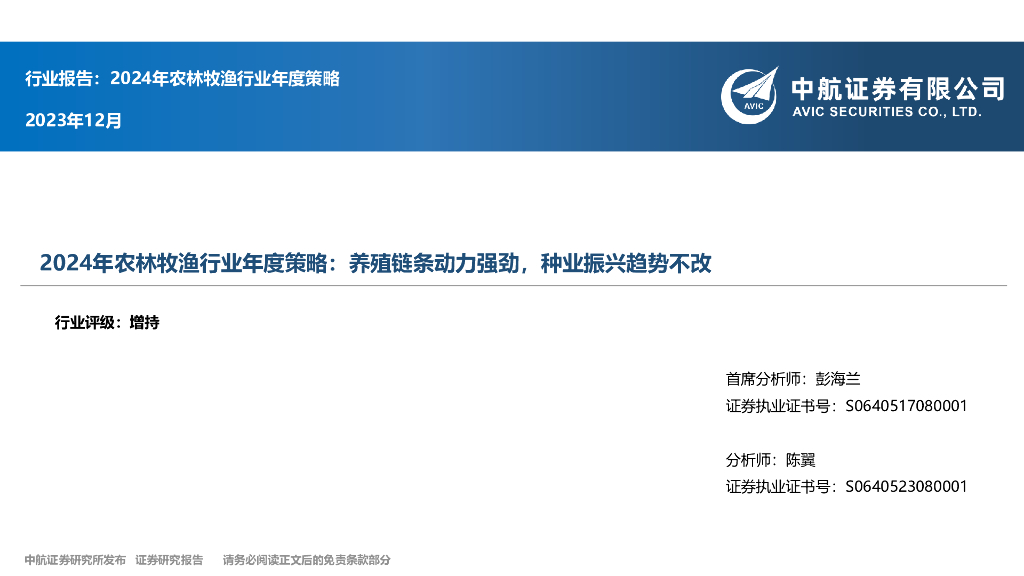 中航证券:2024年农林牧渔行业年度策略:养殖链条动力强劲,种业振兴趋势不改.pdf