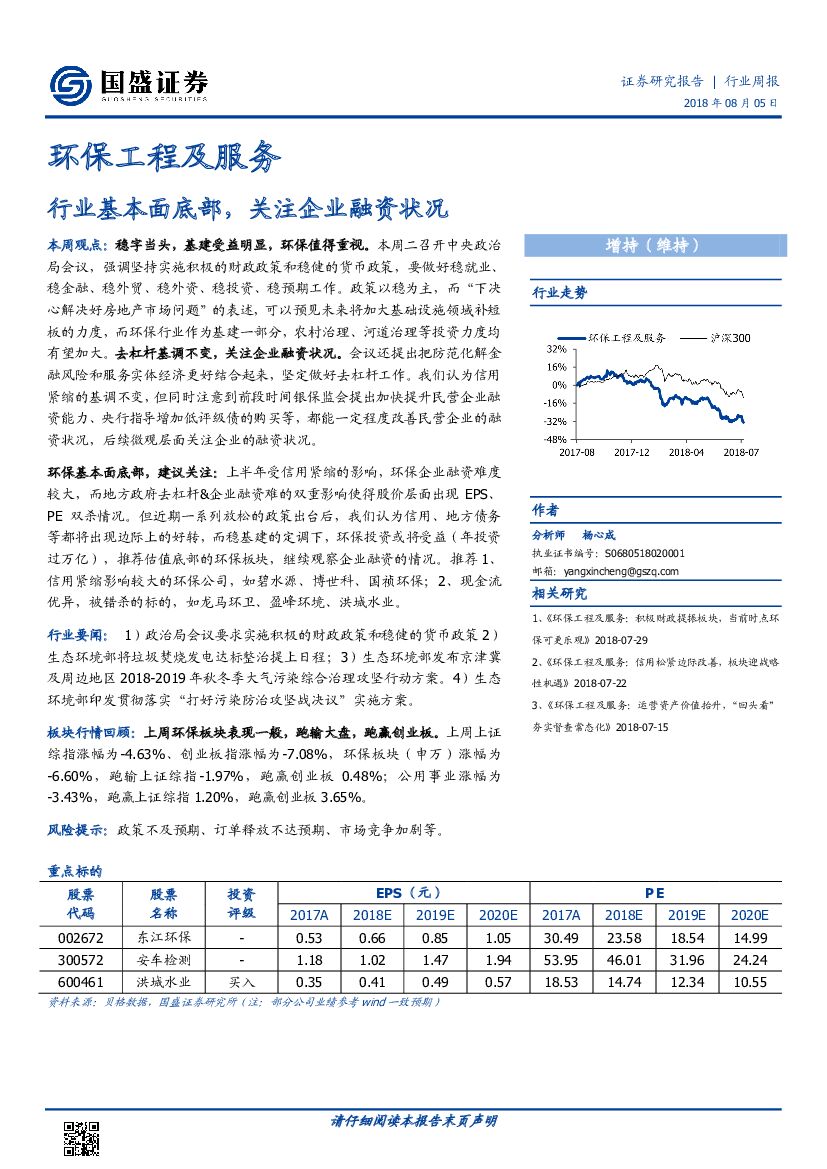 国盛证券:环保工程及服务行业周报:行业基本面底部,关注企业融资状况.pdf