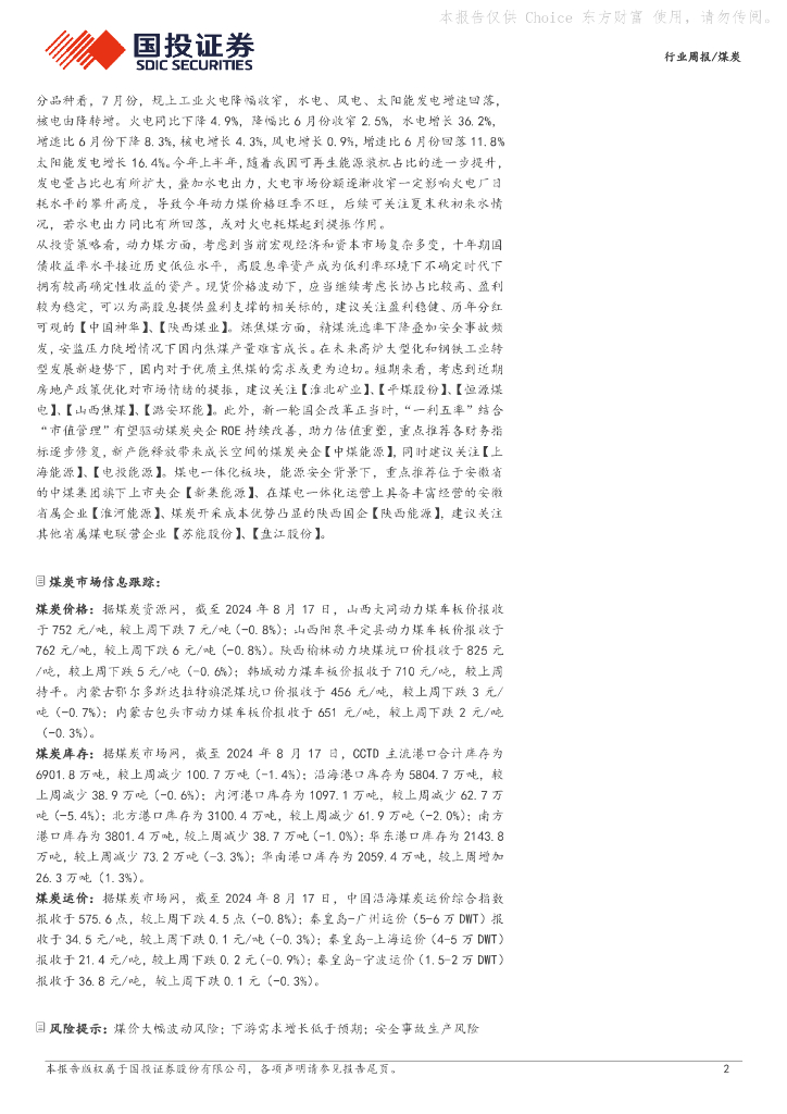 国投证券:煤炭行业周报:7月原煤产量增速略有下滑,关注夏末秋初水电出力情况.pdf
