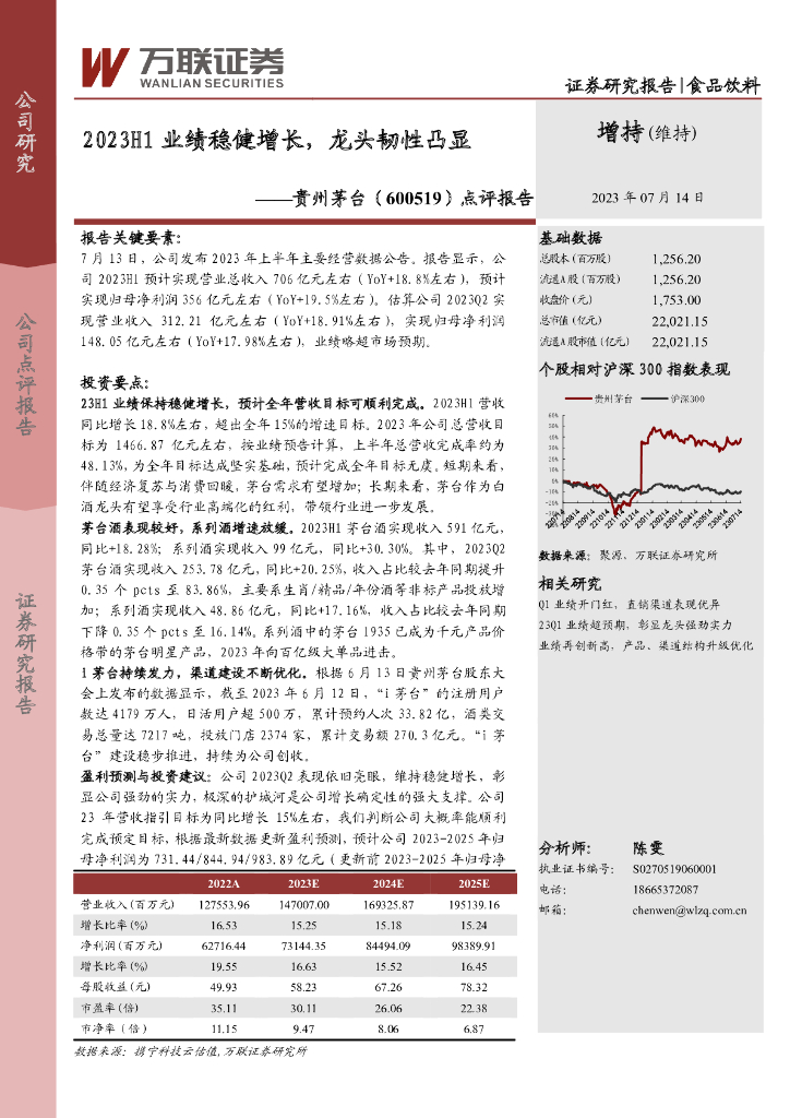 万联证券:贵州茅台(600519)-点评报告:2023H1业绩稳健增长,龙头韧性凸显.pdf