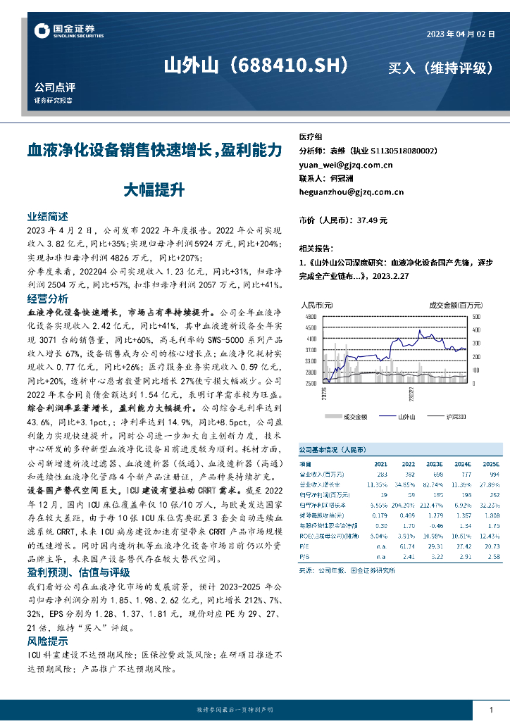 国金证券:山外山(688410)-血液净化设备销售快速增长,盈利能力大幅提升.pdf