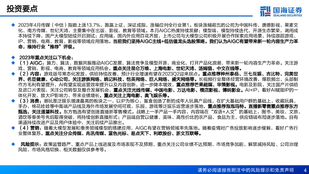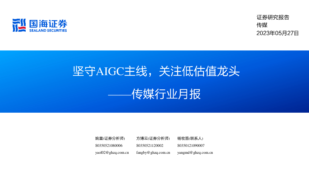 国海证券:传媒行业月报:坚守AIGC主线,关注低估值龙头.pdf