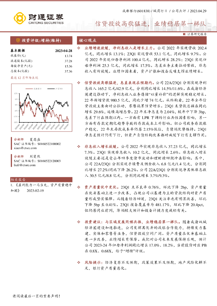 财通证券:成都银行(601838)-信贷投放高歌猛进,业绩稳居第一梯队.pdf