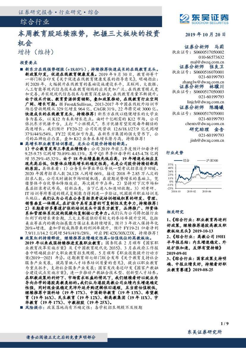 东吴证券:综合行业:本周教育股延续涨势,把握三大板块的投资机会.pdf