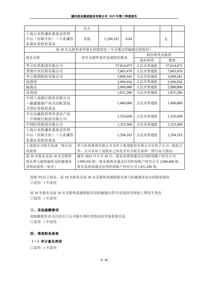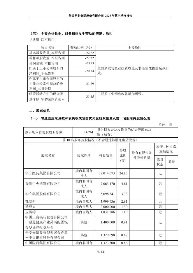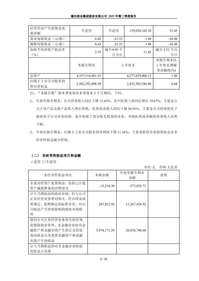 600976-健民集团:健民集团2025年第三季度报告.pdf