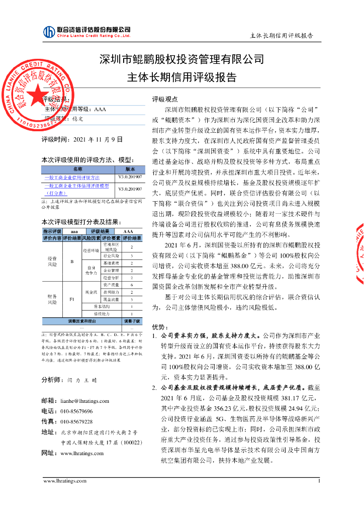 联合资信:深圳市鲲鹏股权投资管理有限公司主体信用评级报告及跟踪评级安排.pdf