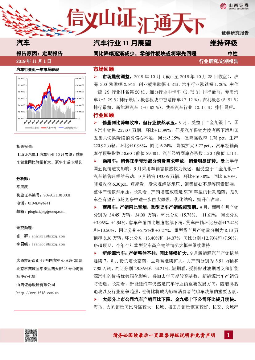 山西证券:汽车行业11月展望:同比降幅逐渐减少,零部件板块或将率先回暖.pdf