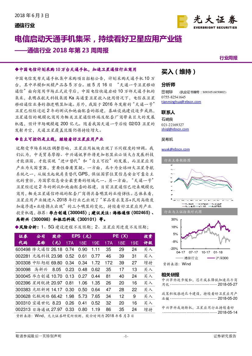 光大证券:通信行业2018年第23周周报:电信启动天通手机集采,持续看好卫星应用产业链.pdf